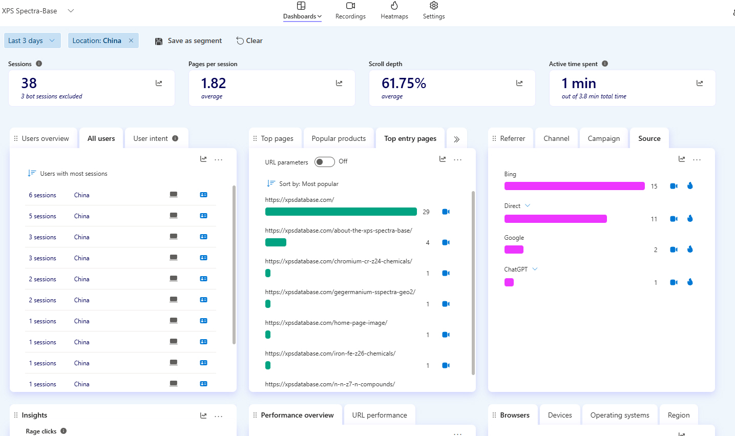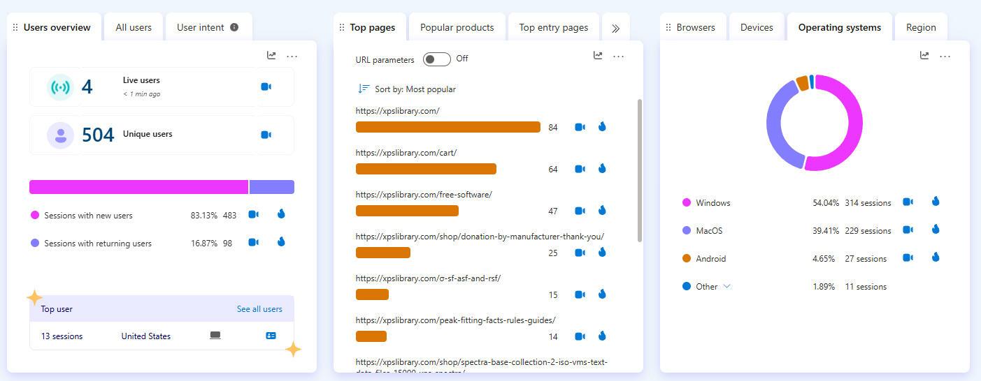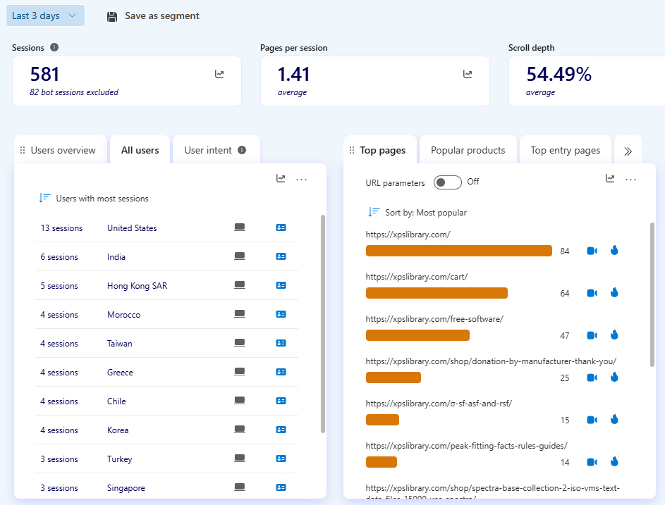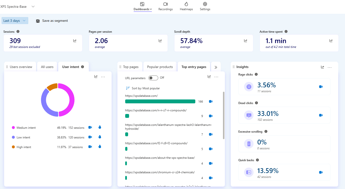| Just below this, there are screen captures of the real-time on-line software that allows me to truly “SEE” in real-time and from recordings what Graduate Students are looking for when they visit “The XPS Library” and “The International XPS Spectra-Base” |