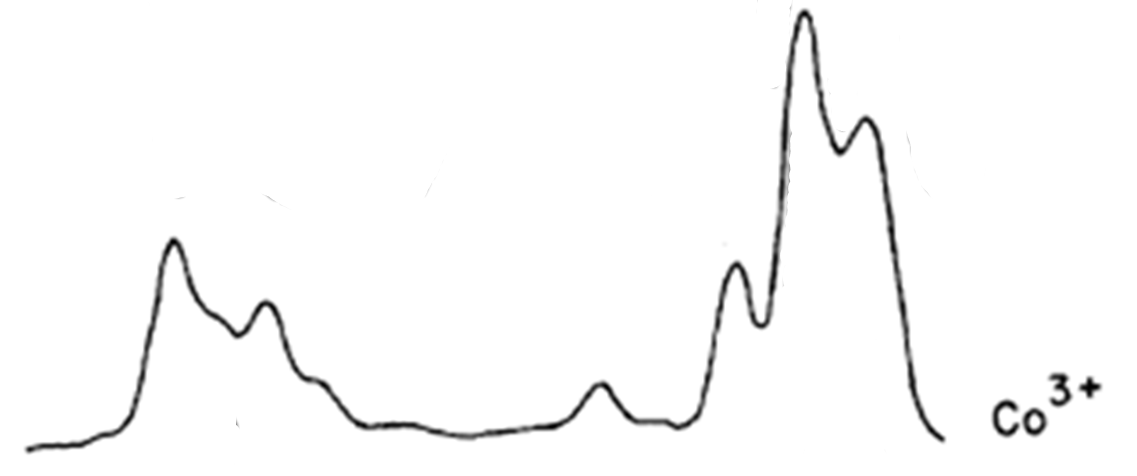Cr (3+), Mn (3+), Fe (3+), Co (3+), Ni (2+), Cu (2+)