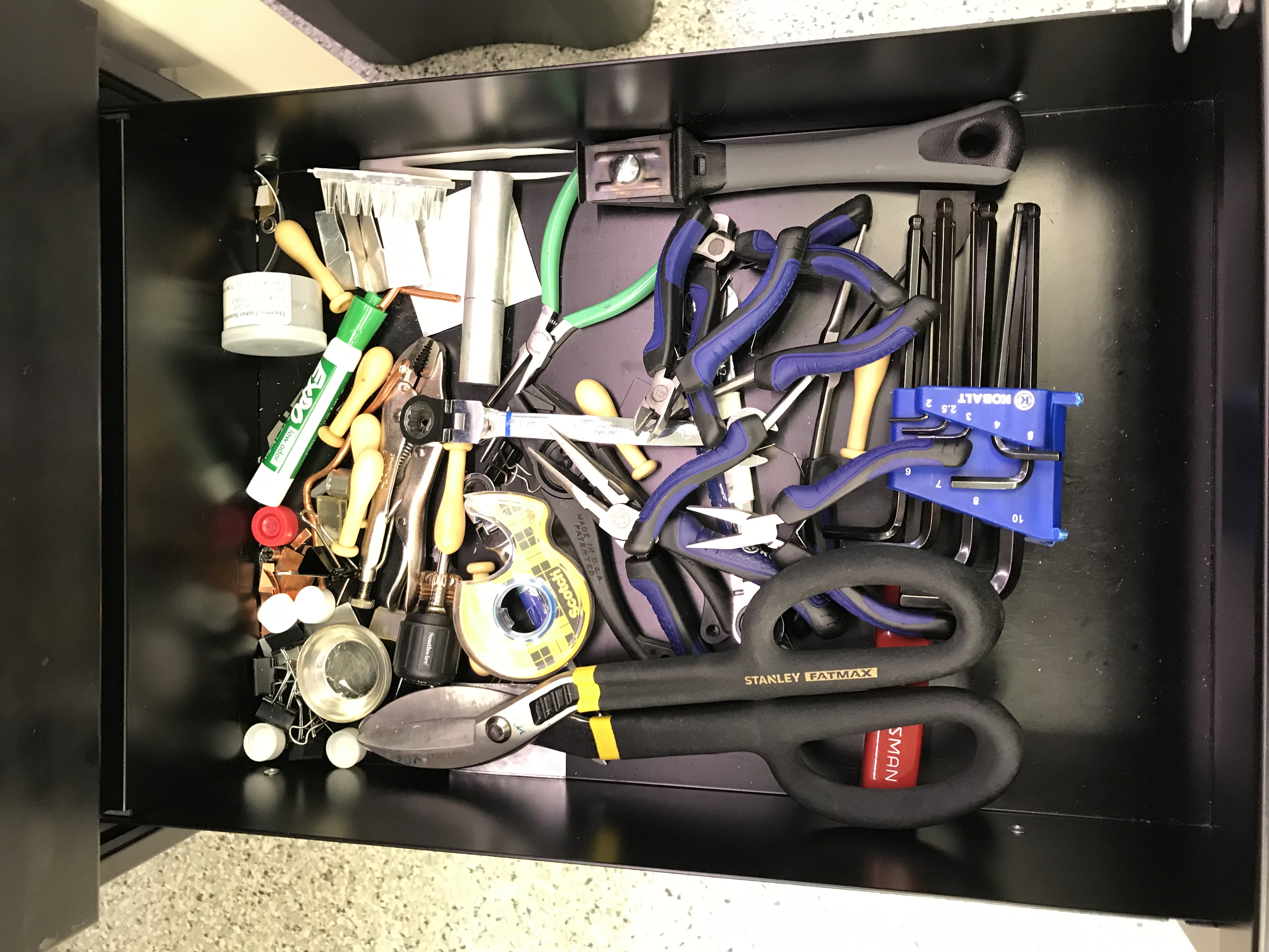 Here are photos of my sample preparation bench and the various tools I use to prepare all kinds of samples such that they fit inside my XPS instrument.